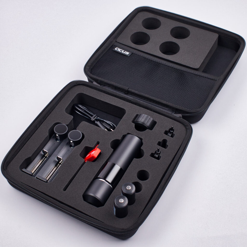 équipé de 2 batteries et d’un chargeur correspondant, de 3 têtes d’entraînement, d’outils, d’un manuel d’instructions et de quelques joints toriques de rechange.