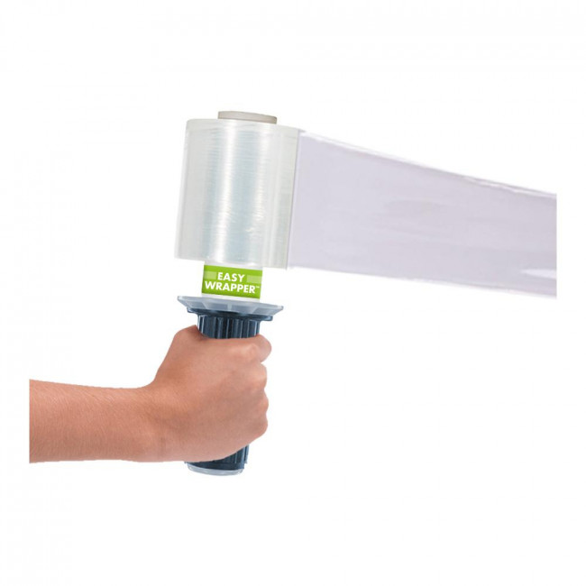 En pressant la poignée, vous pouvez empêcher le film de rouler, ce qui vous permet d’envelopper le film plus étroitement et d’en utiliser moins.