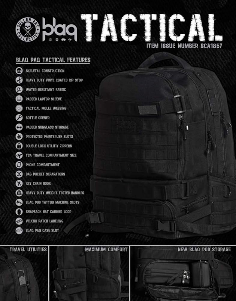 Ce Blaq Tactical Paq est un rêve pour les tatoueurs. Conçu pour un maximum de confort avec autant de poches, il y a de la place pour tout ce dont vous avez besoin. Certaines de nos fonctionnalités préférées incluent :