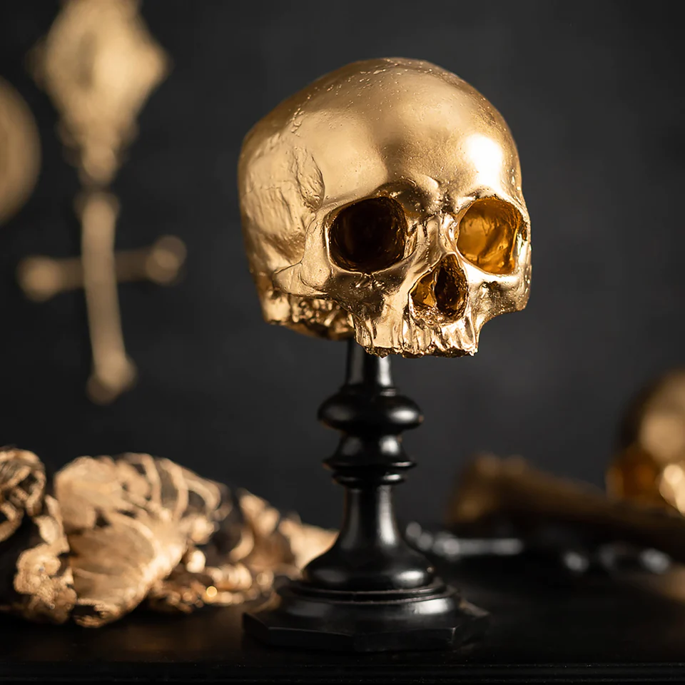 Le socle du crâne gothique est le complément parfait à la maison gothique. Nos crânes de style cabinet de curiosités ajoutent une touche gothique sophistiquée au salon ou au bureau .