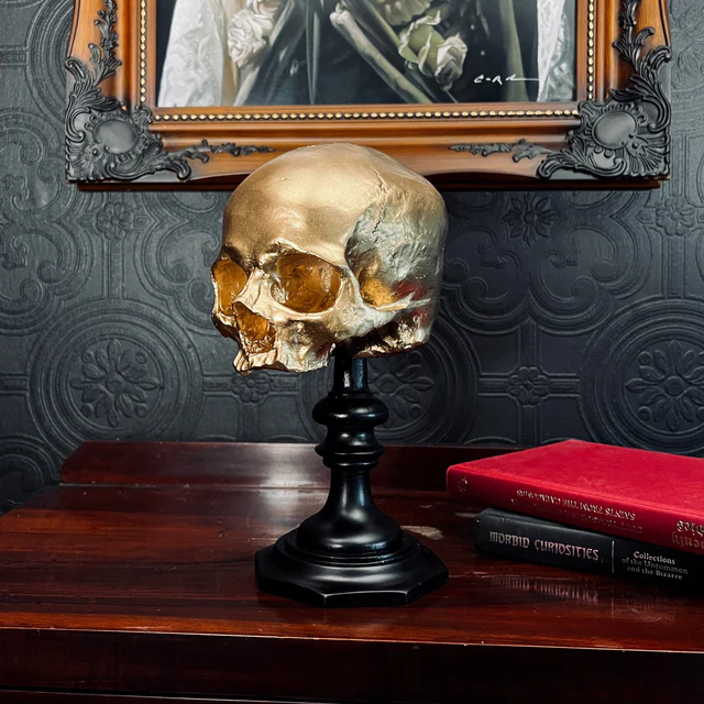 58Réplique d’ornement de maison gothique de socle de crâne humain fait à la main par The Blackened Teeth.