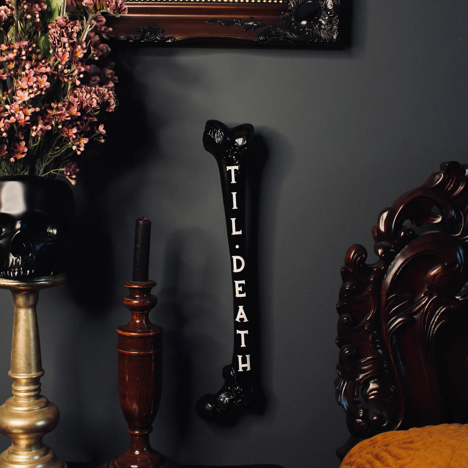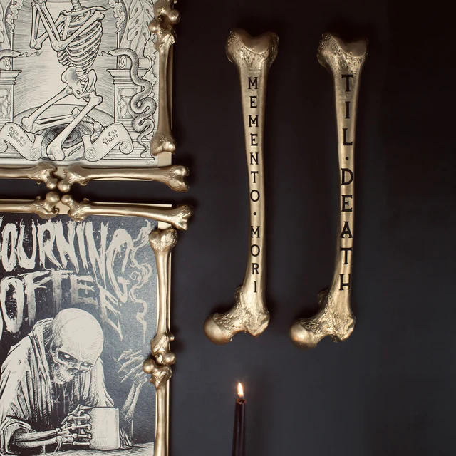 38.5L’os de fémur gravé est le décor macabre parfait pour votre mur de galerie gothique.